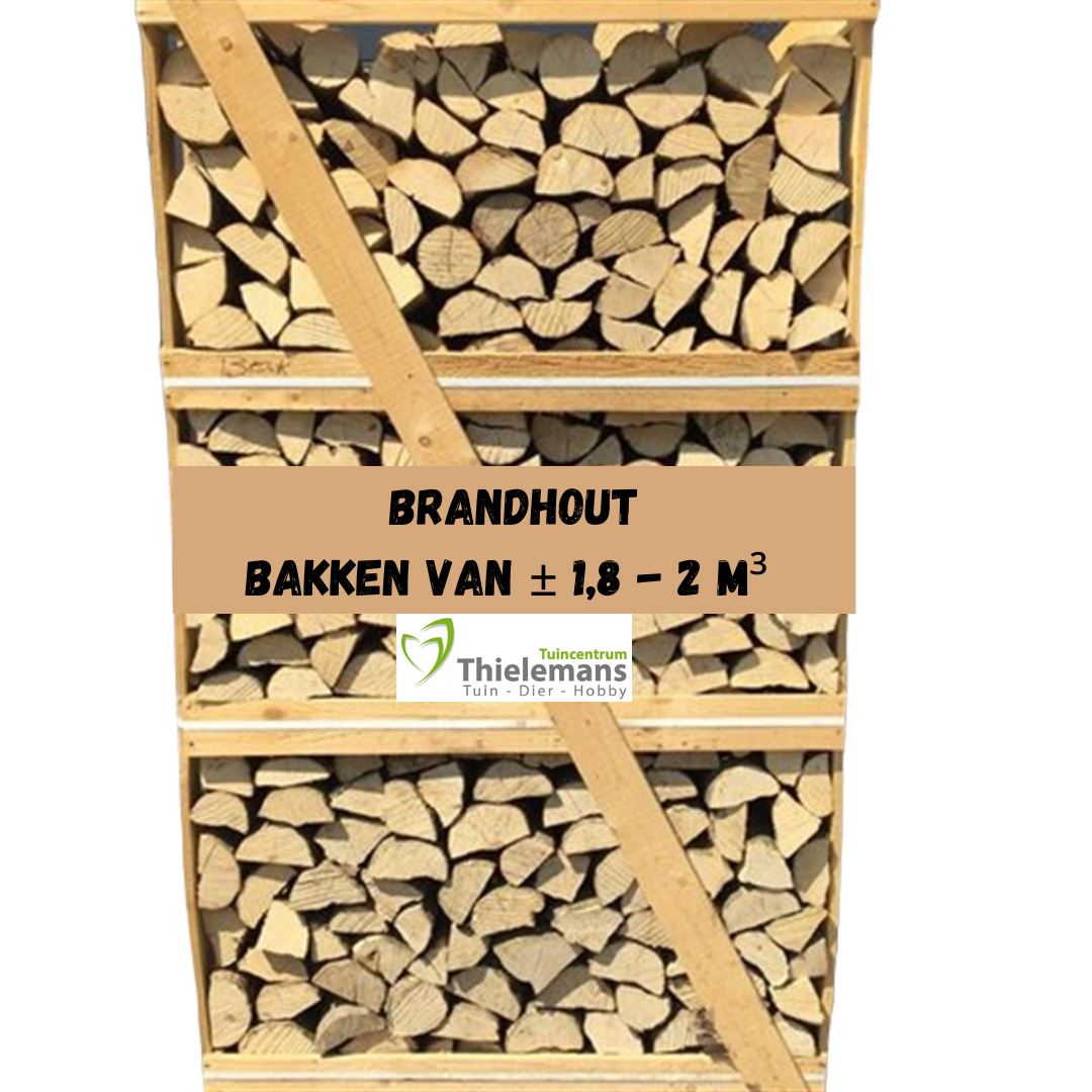 Brandhout, netjes gestapeld in kisten van ± 1 en ± 1,85 en 2 m³. Steeds zeker van de juiste hoeveelheid, gezaagd op ± 30 cm.